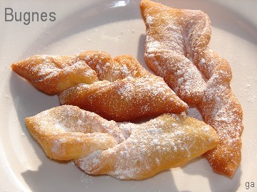 Bugnes: Encore une recette phare du pays lyonnais, celle ci se déguste pour mardi gras et fait la joie des petits comme des grands enfants....